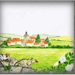 Une touche de tendresse pour votre entrée. Ce décor bucolique aux chats joueurs et paysage vallonné crée un accueil chaleureux et poétique pour votre demeure.