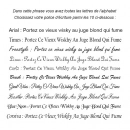 Vous choisissez : - la police de caractère de votre texte - le filet pour le pourtour de votre plaque