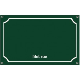 Plaque 30 x 20 cm fond en émail à l'ancienne filet rue et texte en police arial